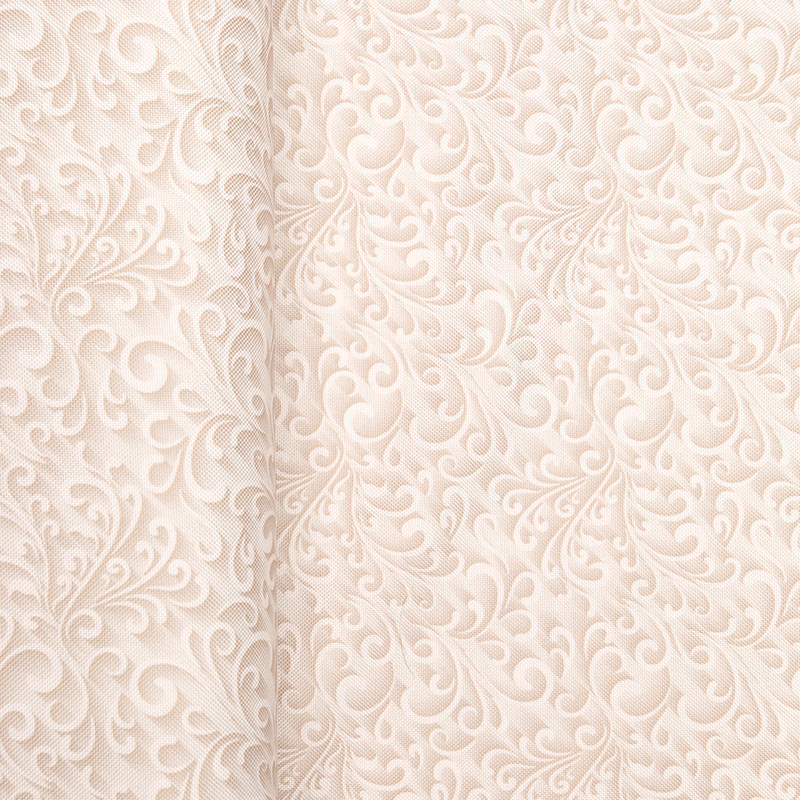 Závěsovina v metráži s motivem béžových ornamentů na světle béžovém podkladu.