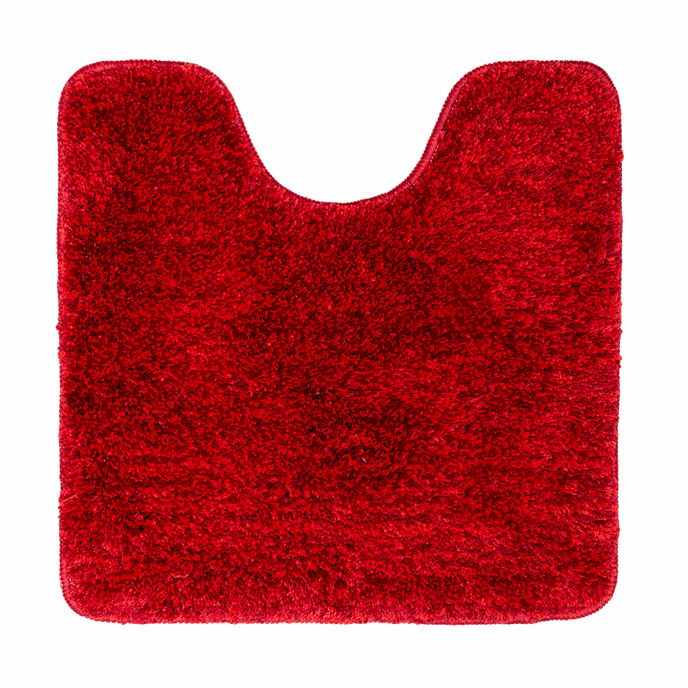 Koupelnové předložka s jednobarevným červeným motivem a čtvercovým tvarem, s WC výkrojem je skvělý doplněk i pro Vaši toaletu.