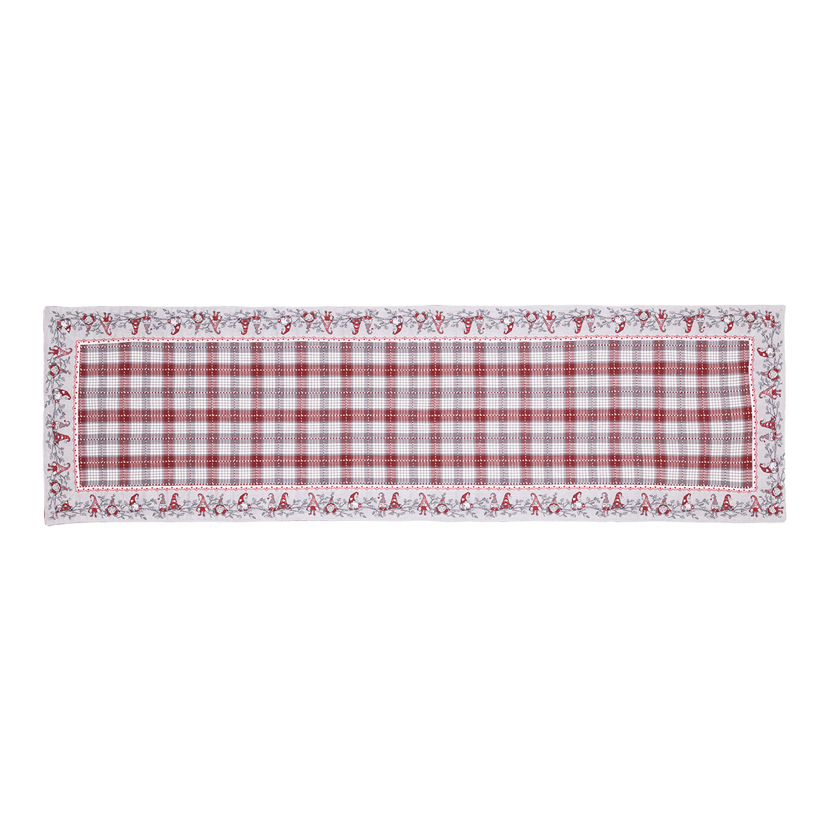 Dekorativní bavlněný ubrus s motivy skřítků na károvaném podkladě pro ozdobení Vašeho kuchyňského, jídelního nebo konferenčního stolu. Světle hnědé barvy podkladu působí velmi přirozeně a přírodně, čemuž odpovídá i 100% bavlněný materiál.