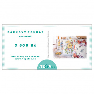Chcete obdarovat své blízké a nevíte si rady s výběrem dárku? Právě pro tyto případy Vám nabízíme dárkové poukazy pro náš e-shop s bytovým textilem! V naší nabídce naleznete dárkové poukazy v různých hodnotách, kterými můžete své blízké obdarovat! Můžete tedy své blízké obdarovat dárkovým poukaz, který lze využít na celý náš sortiment v e-shopu www.tegatex.cz! Dárkový poukaz lze využít na veškeré zboží v našem eshopu, obdarovaný se tedy bude moci za dárkový poukaz koupit vše od ručníků, látek, povlečení i vše ostatní na našem eshopu!